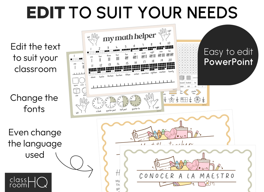 ❤ Almost all of our resources are customisable meaning you can either use the suggested formatting or change them to suit your classroom needs, making this bundle perfect for teachers who need to use particular fonts or bilingual teachers who need to use another language in class.