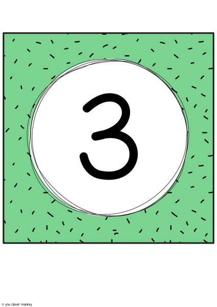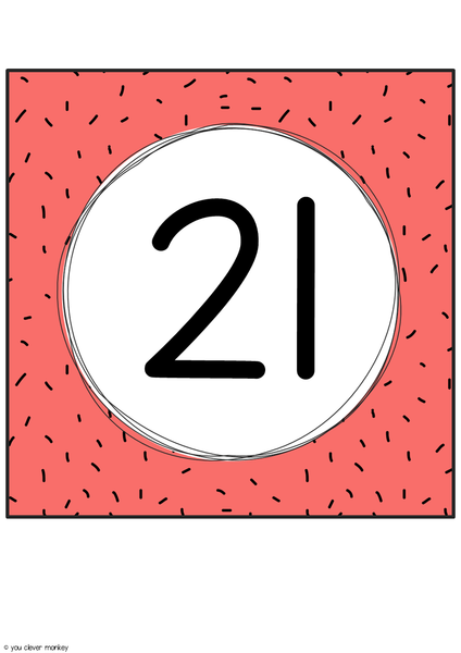 - 0-30 square number posters with bright rainbow color prints + numeral only - 1 per A4 page