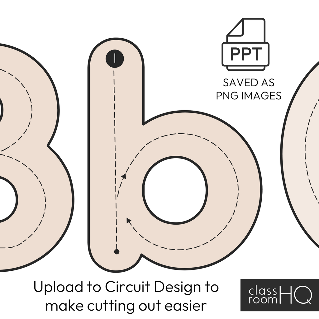 Made to match other B+W NEUTRALS Classroom Decor, you can also use your Circut to cut out these letters! Simply save the slides as PNG files ready for uploading to Cricut Design.