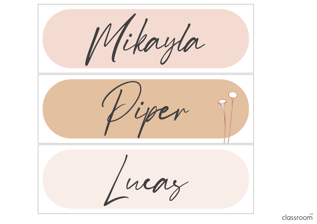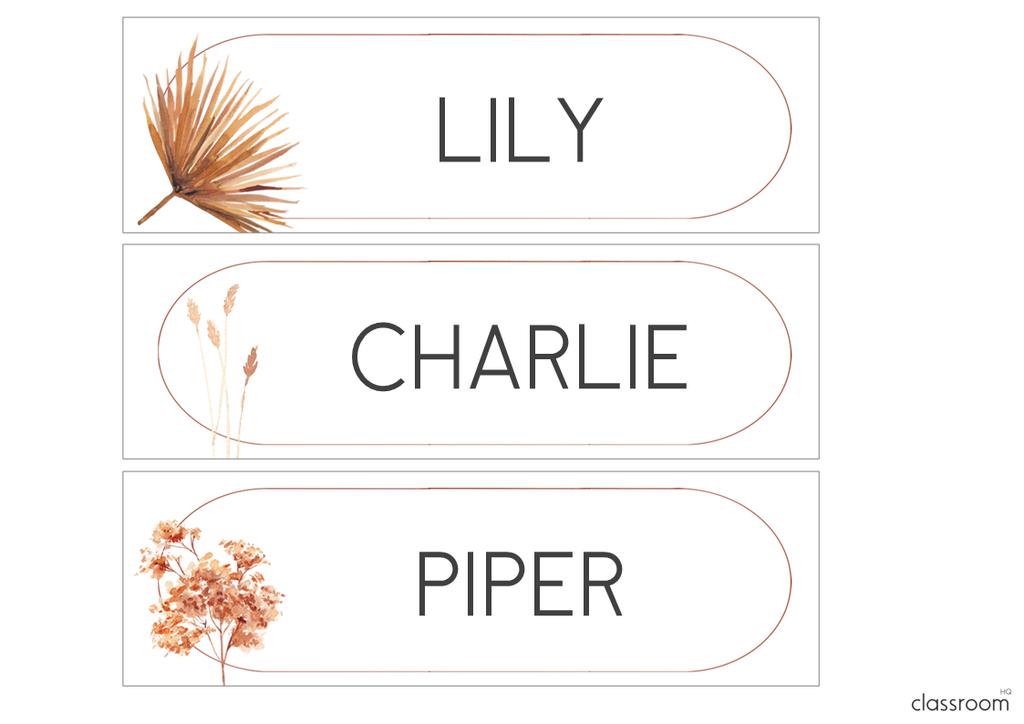 With more of the neutral desert tones you love, these simple desk plates can easily be edited to suit your classroom needs! Made to match our BOHO OASIS Classroom Decor, you will have choose from five different designs then just add your student's names and press print.
