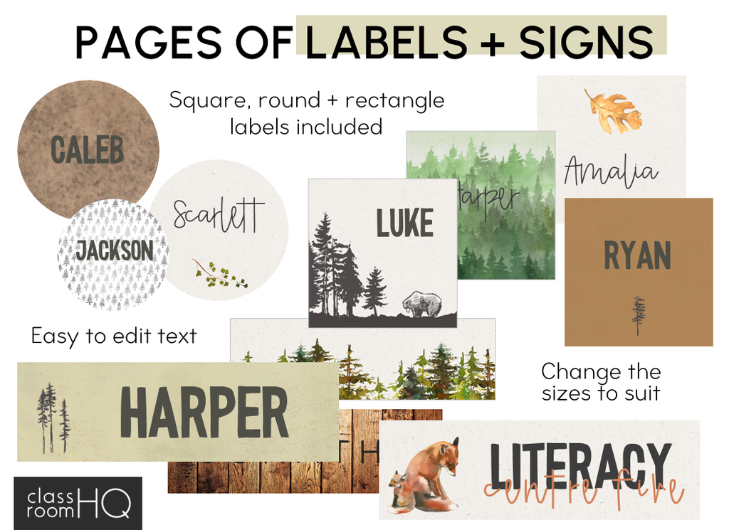 With a huge range of nature inspired designs, this woodland forest classroom pack is easy to edit - choose your label or sign, use our fonts or add your own then press print!