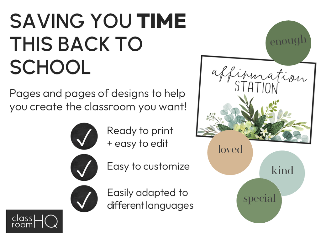 Channel your inner Joanne Gaines and use this classroom decorations pack to create an affirmation station with a modern farmhouse feel in your room this back to school!