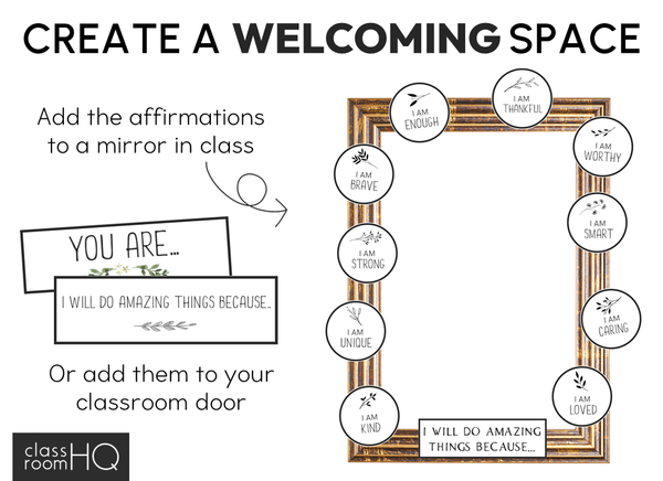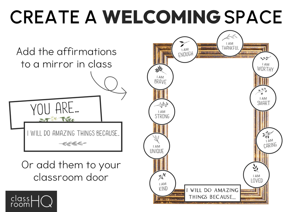 Add them to your classroom door to welcome your children at the start of every day or place them around a mirror so when students see themselves they are surrounded by positive messages. It's never been more important to help build your student's self-esteem and it doesn't hurt for teachers to use this classroom space either!