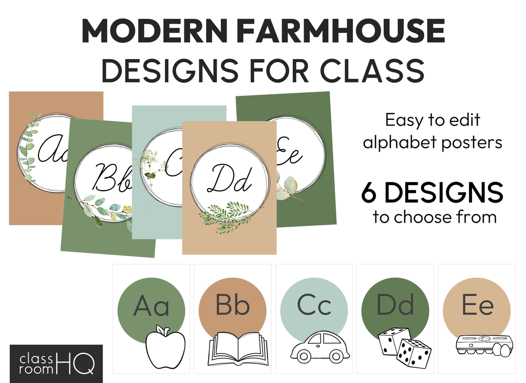 Easy to edit, choose from 7 different designs all made to match our MODERN FARMHOUSE Classroom Decor.