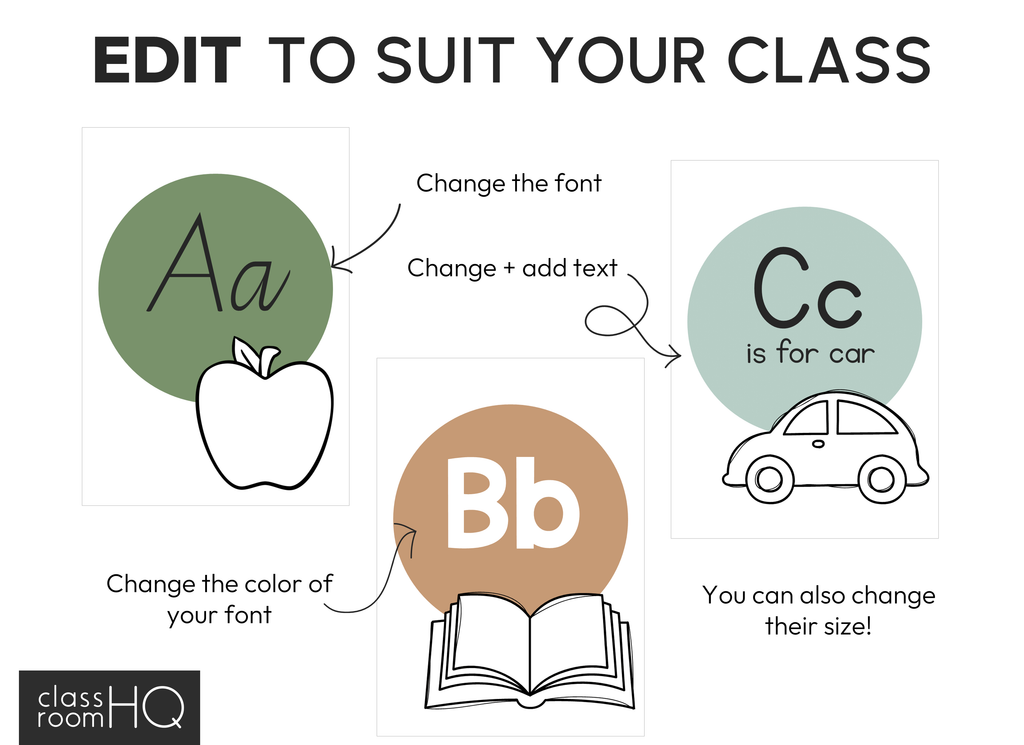 Our editable files allow you to change and customize the text so you can make it exactly what you want to fit your classroom. Simply type into the text boxes provided or add in your own to edit. You will need access to Microsoft PowerPoint to do this.