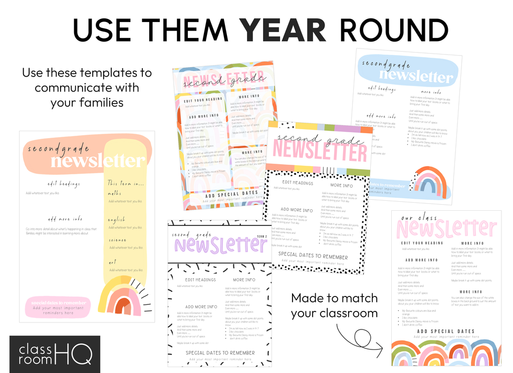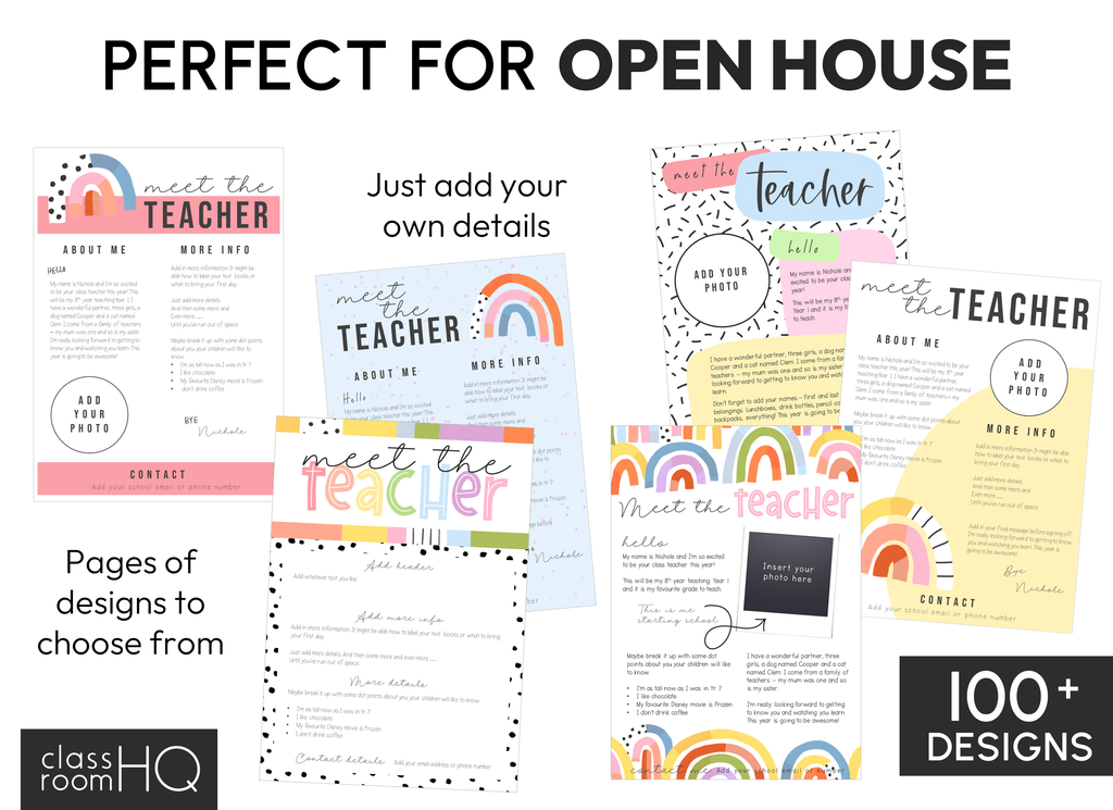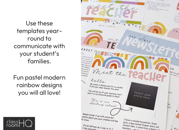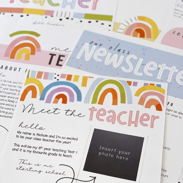 • 100+ modern rainbow themed editable meet the teacher/class newsletter/timetable teacher planner templates - 1 per page