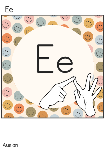 full page editable A-Z Alphabet Posters with American Sign Language (ASL) images with vintage colored background (portrait view) - 1 to an A4 page