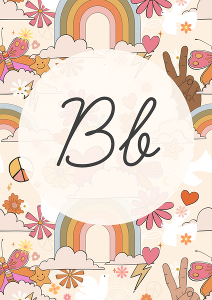 A-Z editable posters portrait design (editable text) featuring featuring a mix of different rainbow colors/patterns - 1 per A4 page