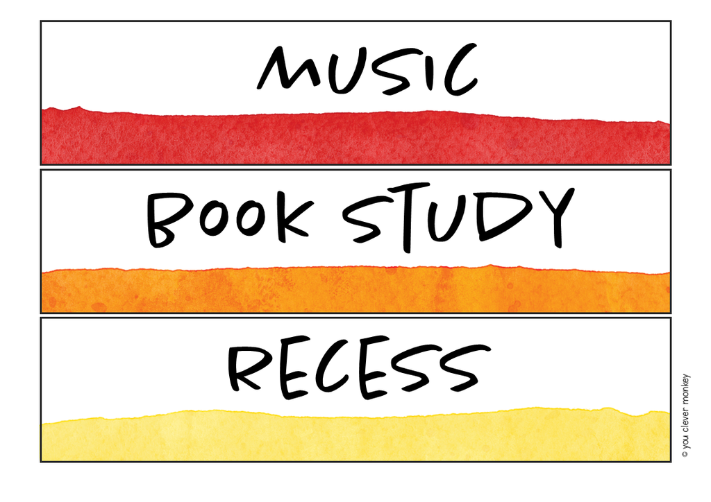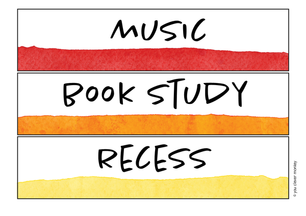 • Editable Visual Schedule Cards: Choose from 4 different sets of designs with and without visual supports - perfect for elementary grades as well as older classrooms. Featuring a variety of subjects, activities, and daily routines, each card is adorned with calming watercolour paint designs that brighten up your classroom while keeping it organized.