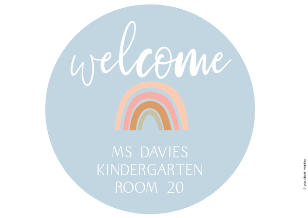 • 8 different coloured larger circular signs with modern boho rainbow artwork- 1 to a page with editable text boxes + can be resized (PowerPoint)