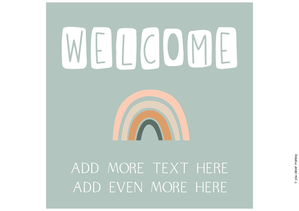 • large display lettering in six different colour ways ( 2 different quotes - 'you are a rainbow of possibilities' + 'be a rainbow in someone else's cloud' (font can not be edited)