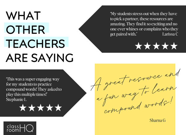 But you don't just have to use these for class organization! Add them to your literacy center rotations as a fun memory match game! Your children will love trying to make all the different compound words.