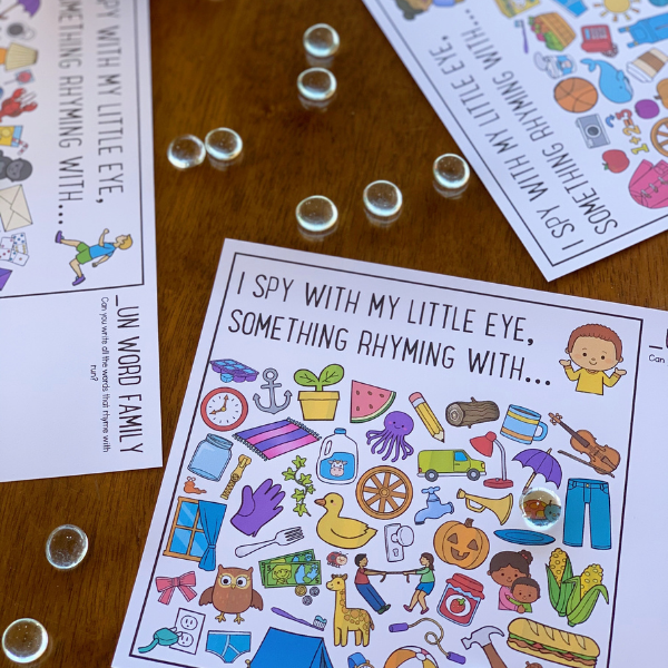 Rhyming Word Family I Spy Mats - UG/UM/UN | Phonological Awareness Skill Builder