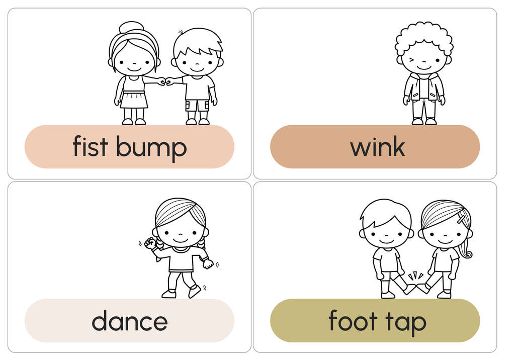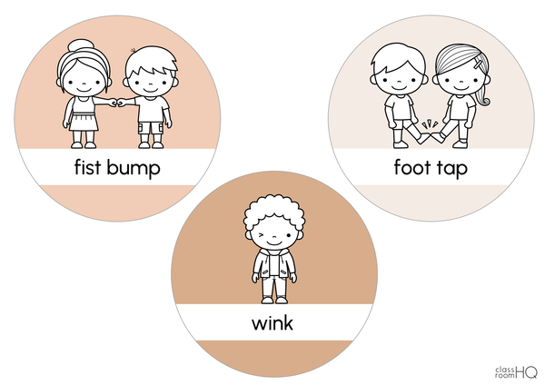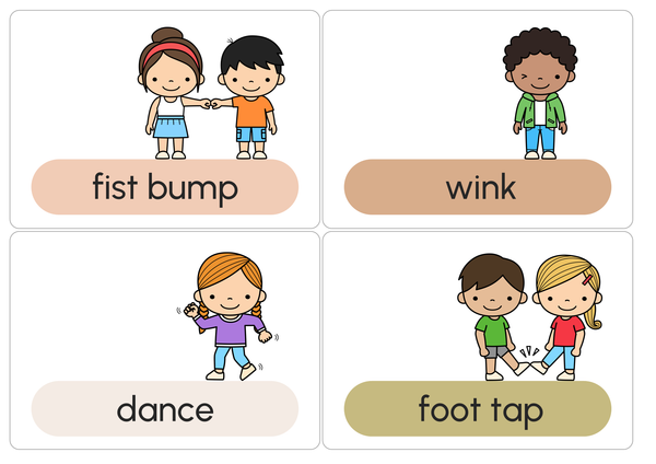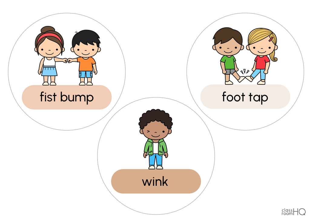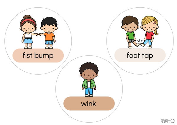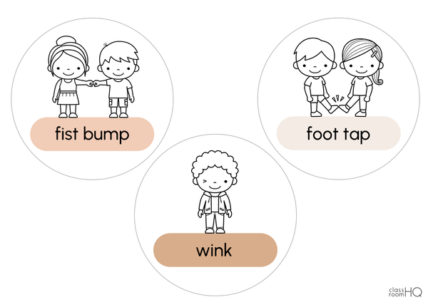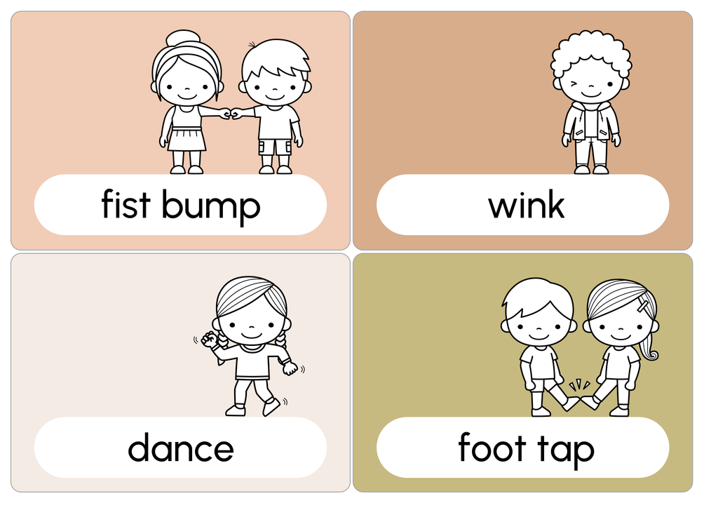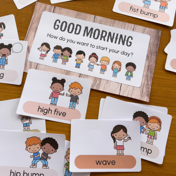 • 10+ Greeting Choice Cards (e.g. high five, fist bump, wave, hug, smile, etc.)
