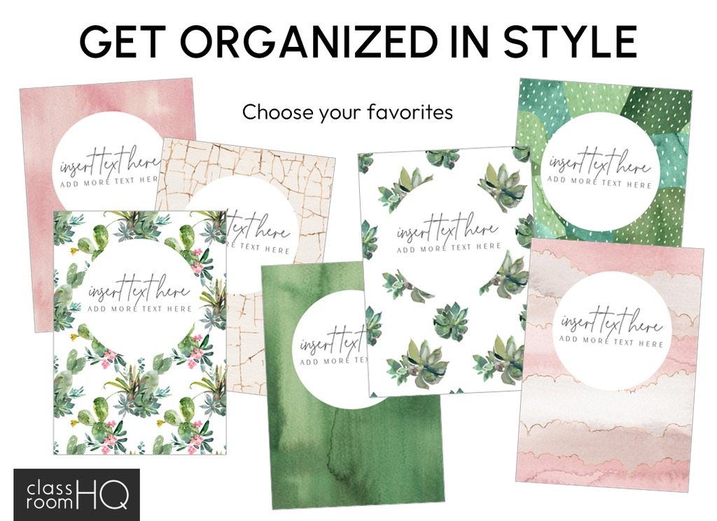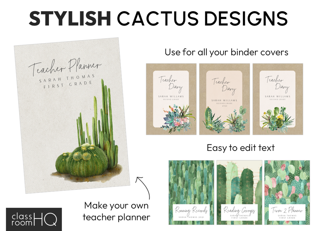 Grab our easy to edit cactus binder covers to help organize your teaching space this school year! You will love the soft desert colours of the watercolour cactus artwork include in these covers - style that never dates!