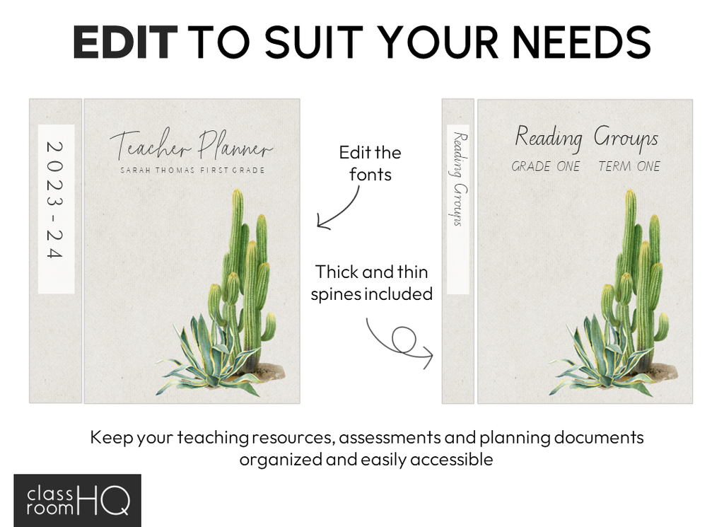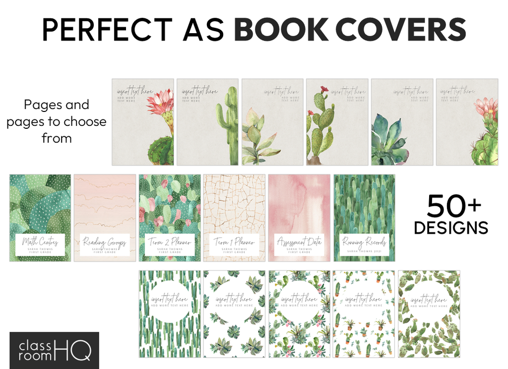 Organizing your classroom has never looked this good! Use these editable cactus themed folder covers and their matching spines made to match our CACTUS Classroom Decor collection for all your assessment data, teacher resources, lesson plans or student book covers!