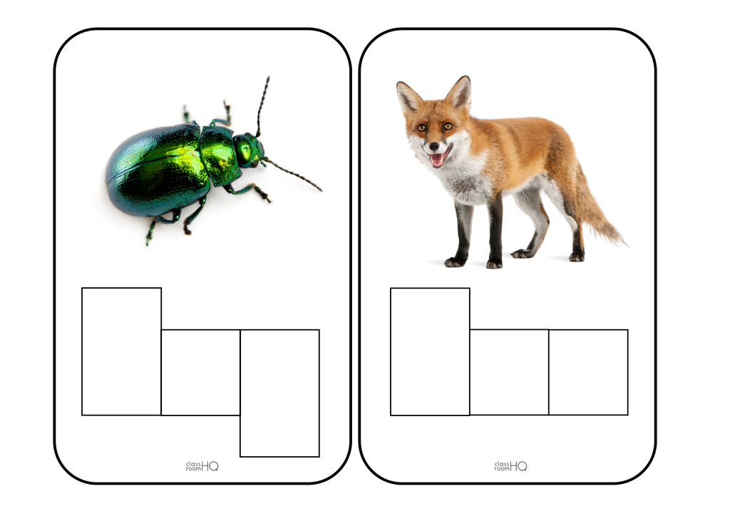 With beautiful, clean photos of real life objects, these CVC (consonant-vowel-consonant) word cards make learning to spell easier with Elkonin style letter frames providing visual support for each word.