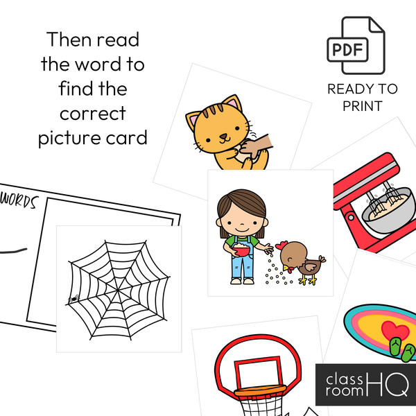 • Picture Match Cards: For students to match the CVC words to corresponding images, reinforcing reading comprehension.