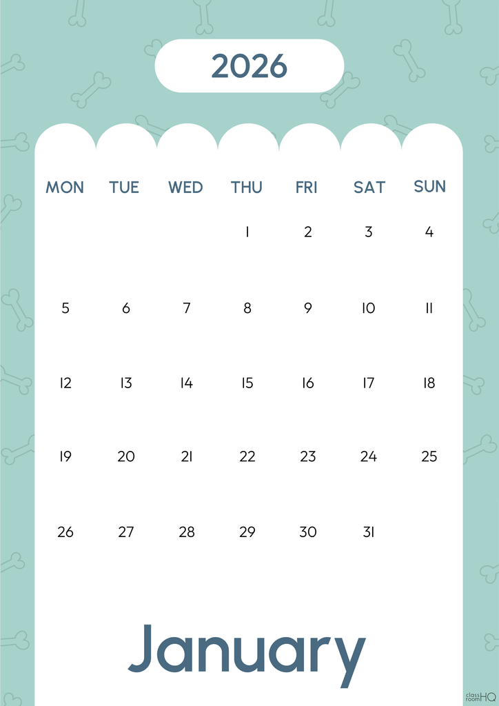With fun dog artwork featured throughout, you'll love to display this single month to a page calendar in your classroom! With a single month to each page, this easy to edit calendar makes it easy to keep track of all your important dates! Choose from landscape or portrait view pages to create your own teacher planner from or print larger to use as your classroom calendar this school year - perfect to teaching young children about time!