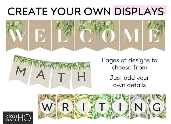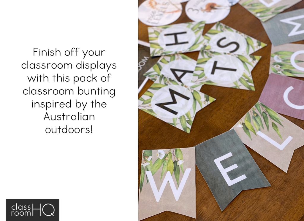 Whether you’re a new teacher setting up your classroom or refreshing your space throughout the year, this eucalyptus bunting banner pack will help you stay organised while adding a touch of nature-inspired beauty.