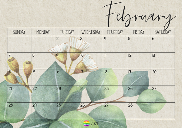 12 month GUM LEAF themed calendar (January-December 2025, 2026 + 2027) LANDSCAPE VIEW - 1 month per A4 page PDF