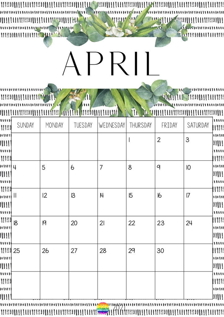 12 month editable GUM LEAF themed calendar month to a page calendar PORTRAIT VIEW - 1 month per A4 page