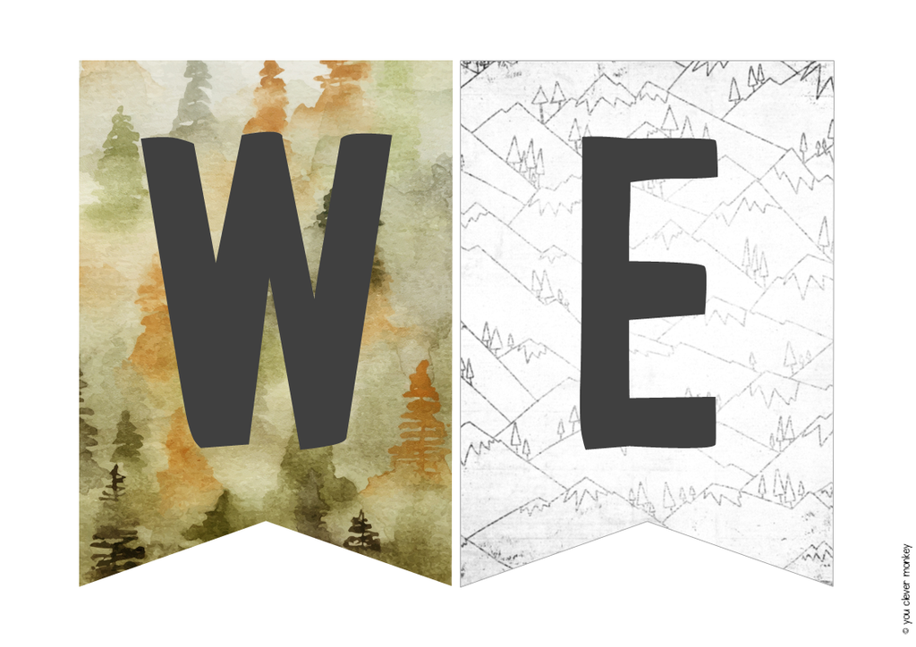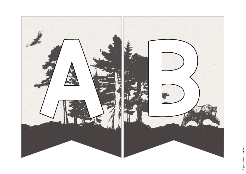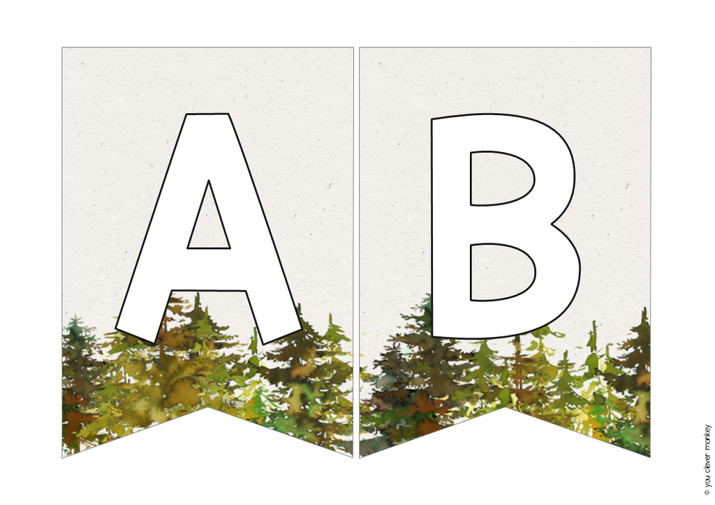 • editable bunting flags/penants (70+ different styles - forest designs/trees/woodland animals/modern forest designs + more to choose from) - 2 to a page but can be resized.