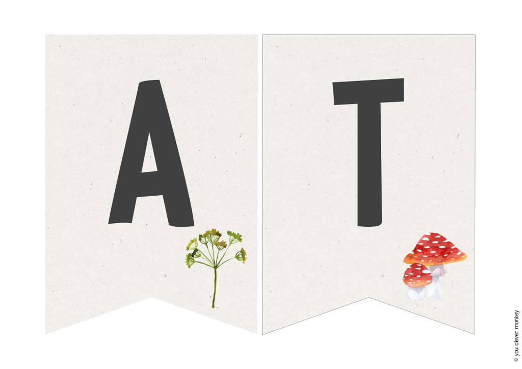 Complete your woodland forest themed classroom with our easy to edit bunting flags. Bringing all your favourite elements together in one set of classroom decor - earthy forest inspired colors, timber, watercolor woodland animals + plants, hand drawn forest designs in silhouette!