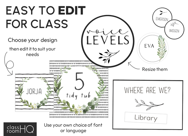 Our editable files allow you to change and customize the text so you can make it exactly what you want to fit your classroom. Simply type into the text boxes provided or add in your own to edit. You will need access to Microsoft PowerPoint to do this.