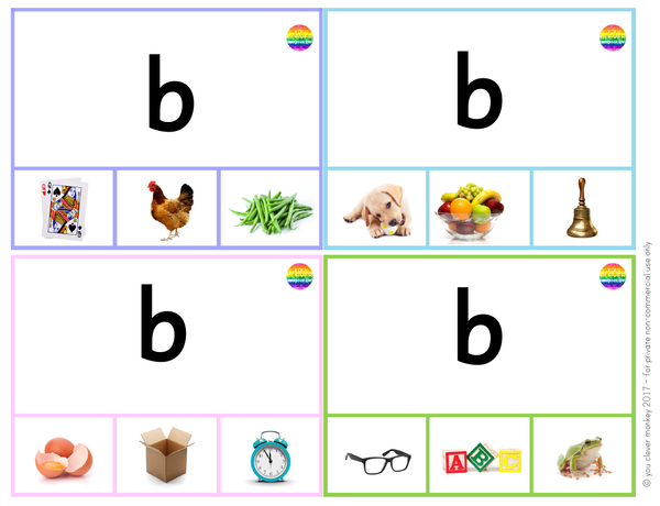 These simple clip cards are ideal for young children learning to recognise and isolate the initial sounds in words. With only three words to choose between, these cards won't overwhelm early learners.