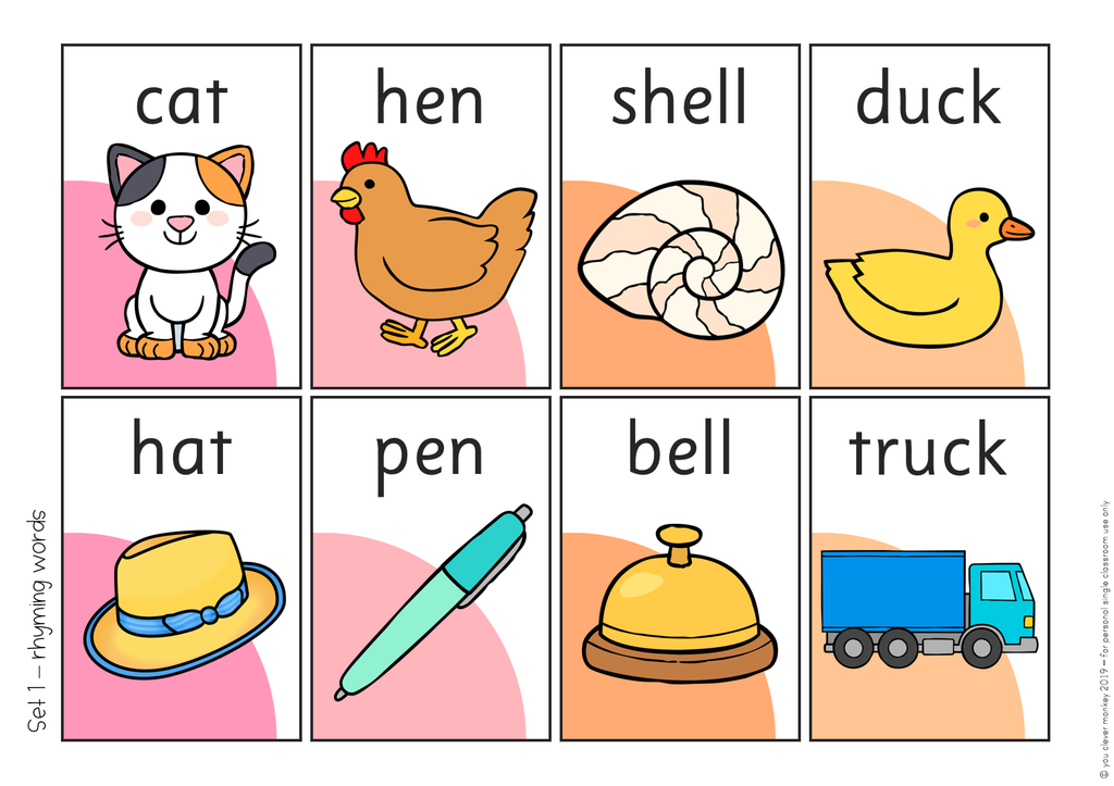 Designed to help you organize your class into working pairs, use this pack of rhyming word cards as a fun memory match game in your literacy centers or simply hand out a card to each child then they can search for the classmate with the matching one!