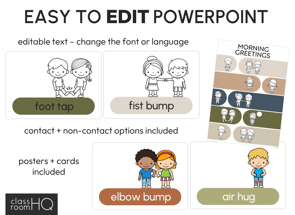 MORNING GREETING CHOICES included (contact + non contact choices) -