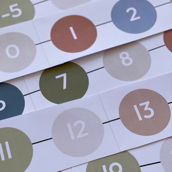 Number lines can be an excellent visual support in class when learning the early concepts of math. Having numbers displayed on a number line makes it easier to compare numbers. Arithmetic operations can also be more easily introduced and explained with use of a number line.