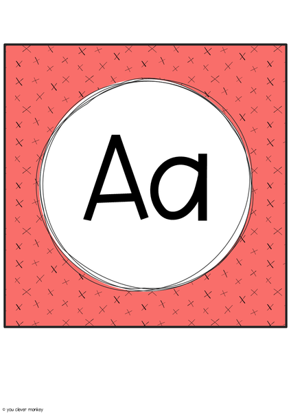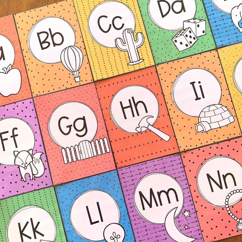 • Aa-Zz alphabet posters (square shaped rainbow colored + hand drawn print backgrounds) - 1 per A4 page