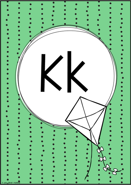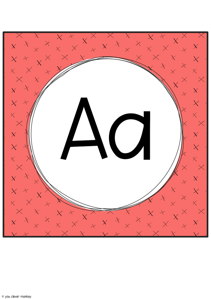 - full page size with room for the letter of the alphabet plus a picture starting with the same sound or for older children, square posters with space for letters.