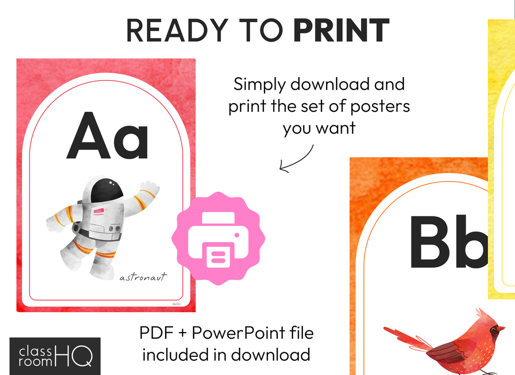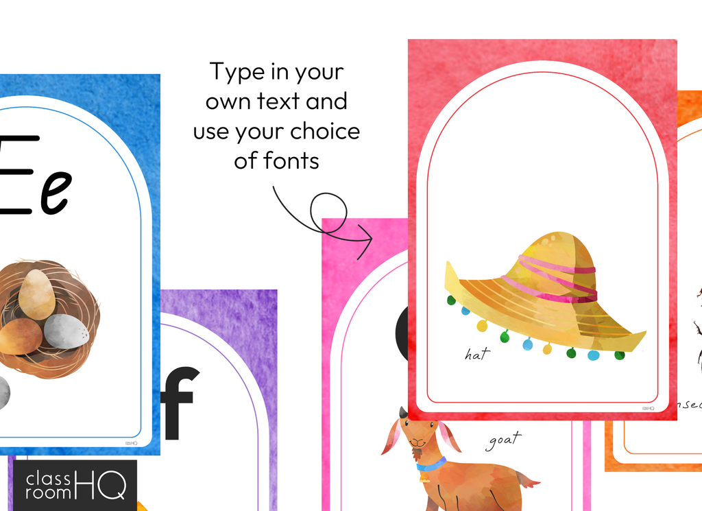 Brighten up your classroom and support early literacy skills with this editable pack of rainbow watercolour alphabet posters! Designed with a calming and modern aesthetic, this versatile resource includes A–Z posters in five different styles: three sets with phonics-based visual supports (beginning sound images), and two without — giving you the flexibility to meet the needs of your learners and match your classroom decor style.
