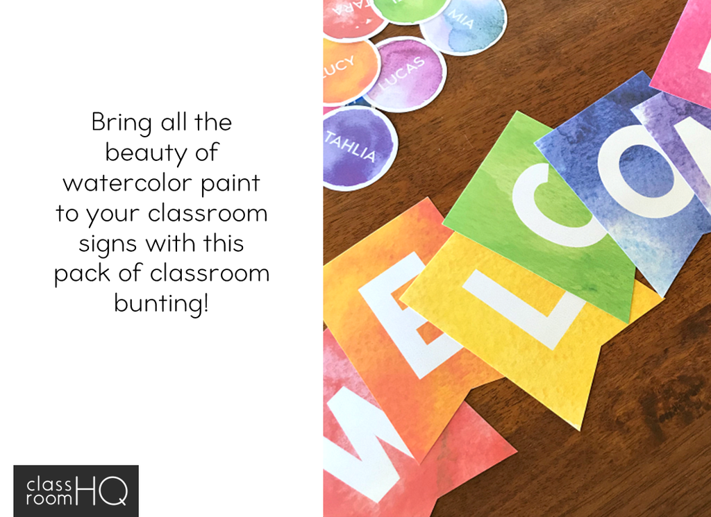 Whether you’re setting up your back-to-school display, labelling learning centres, or celebrating special events, this watercolour rainbow bunting will give your classroom walls a vibrant and welcoming feel.