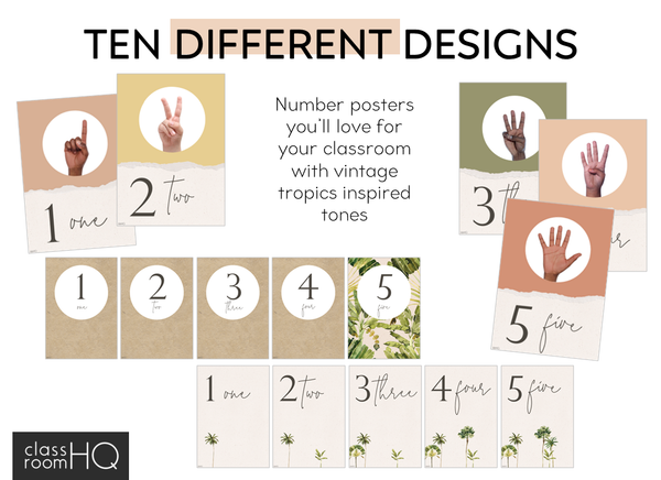 Use these tropical themed number posters on display in your classroom to provide visual support for your students as they learn about numbers.