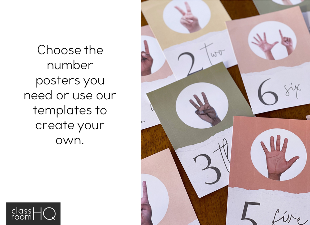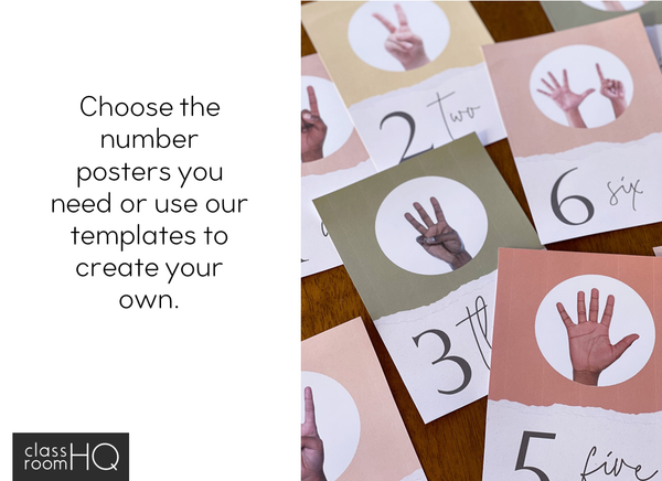 • 0-10 number posters with real life photos of hands demonstrating the correct number on neutral coloured backgrounds + editable text - 1 per A4 page