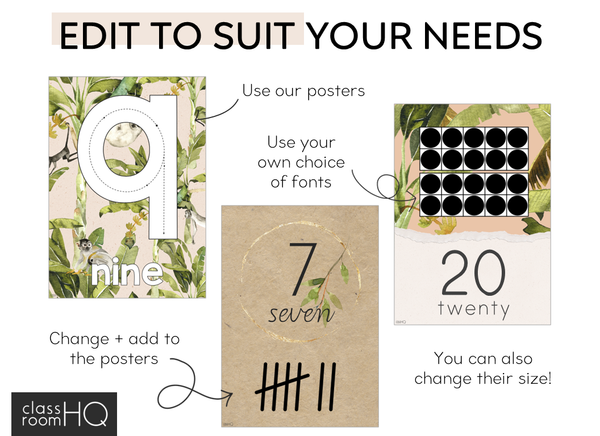 Many of these designs can be customized to suit your needs - perfect for teachers needing to use their own fonts or wanting to use another language as the text can be edited to from English as required making them ideal for bilingual classrooms. Edit the posters to add in dice, number lines, tally marks, Numicon or other math manipulatives you use in your classroom!
