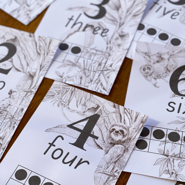 • 0-10 number posters with 1 x ten frame with hand drawn quirky jungle animals on white backgrounds + editable text - 1 per A4 page
