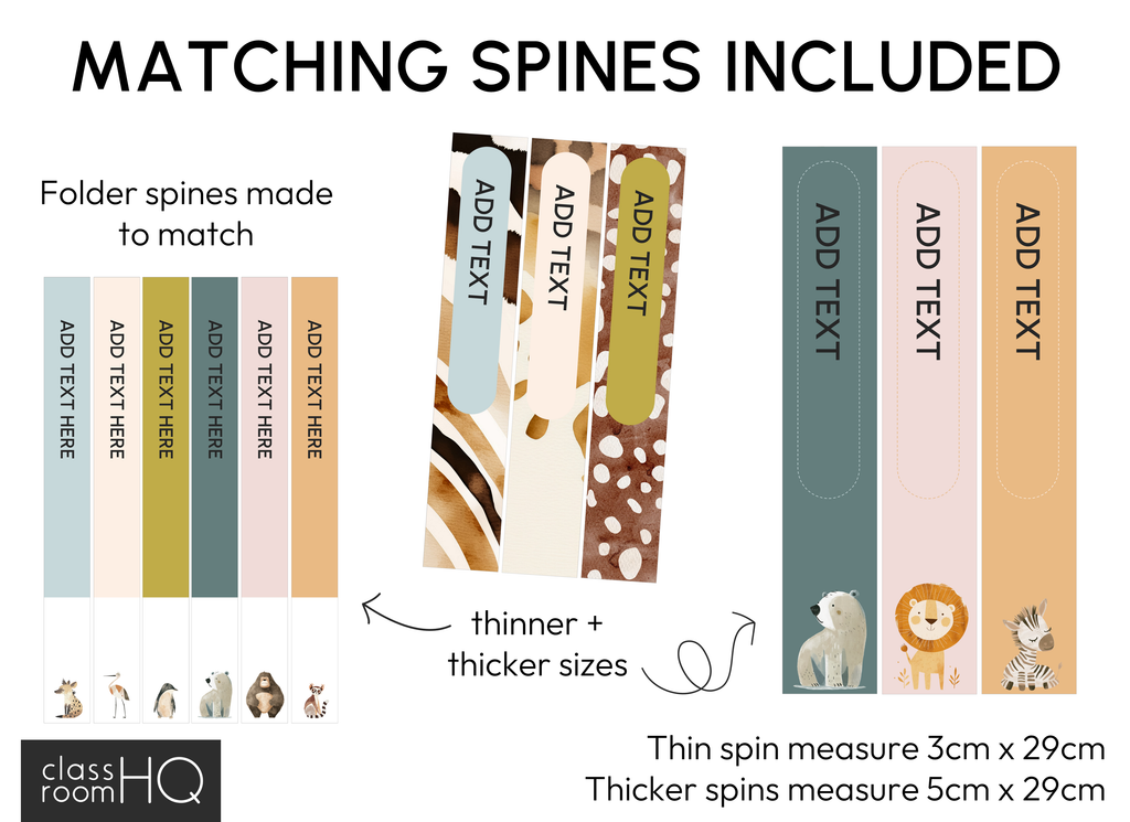 Binder Covers (60+ Designs): Featuring a mix of unique animal illustrations and a modern colour palette, these covers are designed to fit standard binder sizes and add a fun and vibrant touch to your classroom organization. Also perfect for using as student book covers.